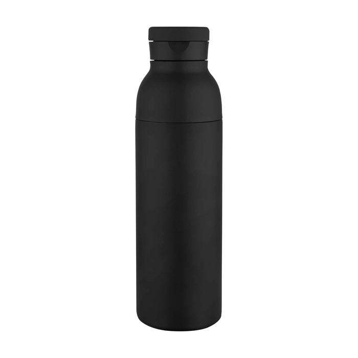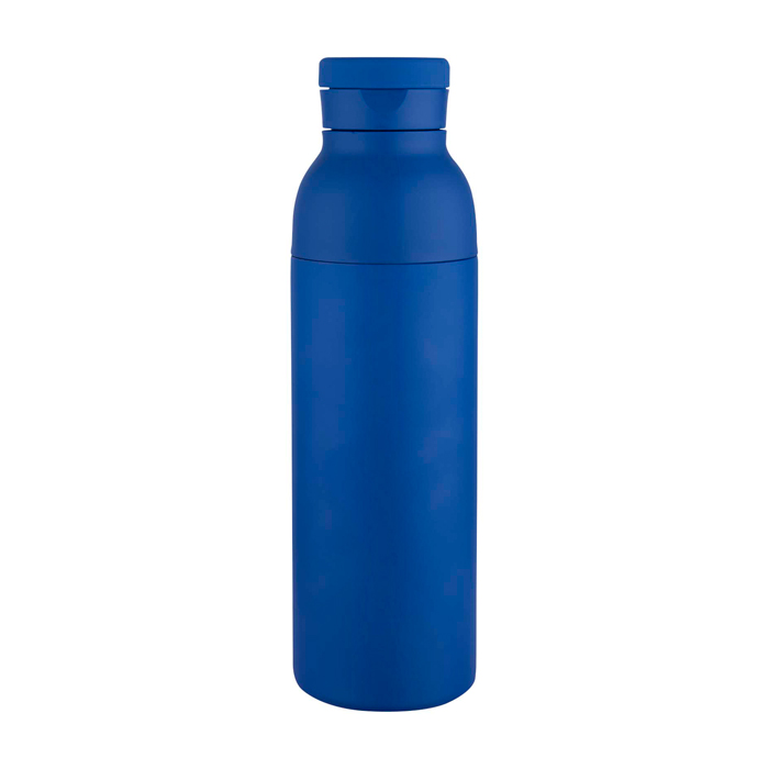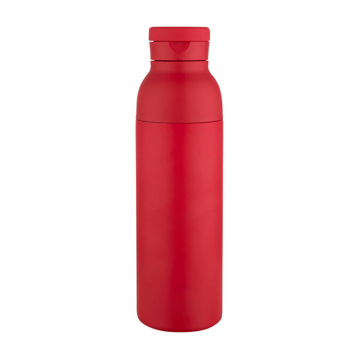 Botella de agua de acero inoxidable de doble pared con aislamiento al vacío y certificación RCS (Recycled Claim Standard). Incorpora una asa de silicona discreta en la tapa para transportarla con comodidad. Mantiene las bebidas frías hasta 48 horas y calientes hasta 12 horas, útil para jornadas largas y desplazamientos. La construcción en dos piezas facilita la limpieza, y el recubrimiento en polvo con chapado en cobre ayuda a conservar el rendimiento con el uso. Se entrega en caja de regalo de cartón reciclado para acciones de marca.