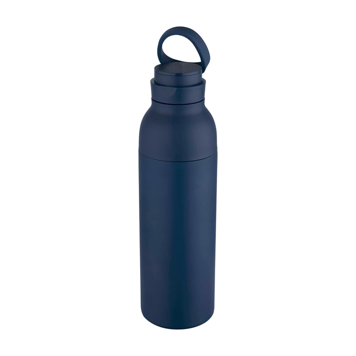 - Botella de acero inoxidable con aislamiento al vacío y asa