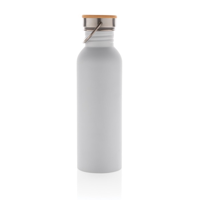 Ayuda a clientes y trabajadores a mantener la hidratación a raya durante sus jornadas laborales con esta botella de acero inoxidable que destaca por presentarse bajo un diseño moderno y cuidado y por su sistema antiderrames. Cuenta con estructura de una sola pared e incorpora una tapa de acero inoxidable, con detalles de bambú y una asa que facilita su transporte. Dispone de 700 ml de capacidad, está disponible en varias versiones de color y su fabircación es libre de BPA, por lo que es completamente segura para la salud. Se presenta en caja de regalo, solo es apta para lavado a mano y puede personalizarse con gran variedad de técnicas, incluido el grabado láser.