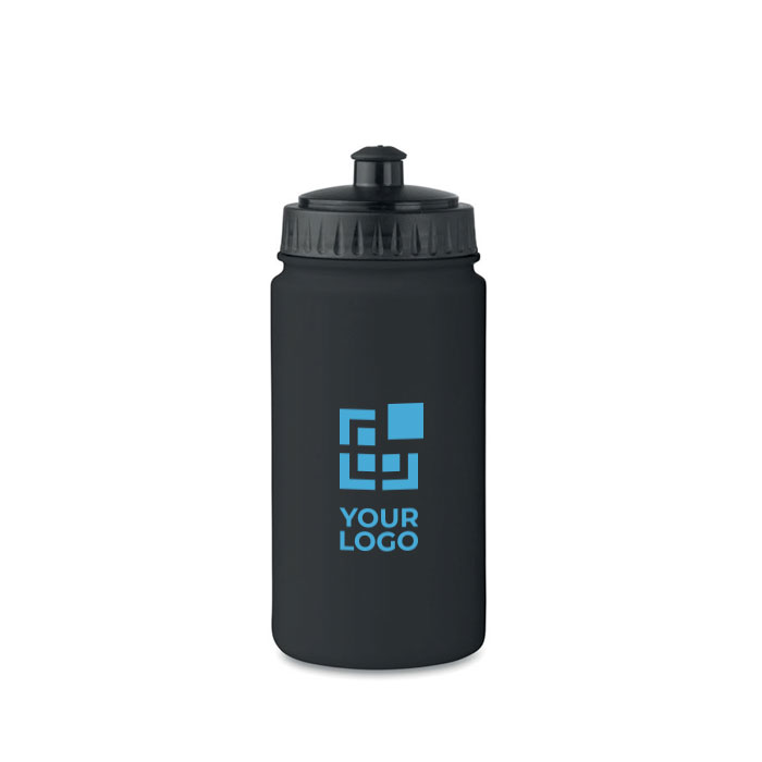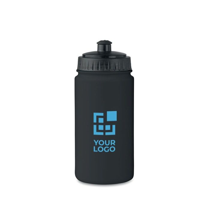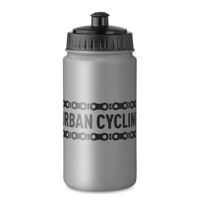 Botellas fabricadas en plástico PE y disponible en distintos colores opacos. Su capacidad es 500 ml, lo estándar para este tipo de recipientes en la práctica de ejercicio. Este modelo, por su formato con boquilla, es de los más tradicionales cuando se hacen actividades de acondicionamiento físico porque permite hidratarse de forma rápida. El marcaje del logotipo junto a la elección del tono cromático del cuerpo permitirán que esté debidamente identificada con la empresa que haga el regalo. Estas botellas deportivas son muy habituales como obsequio en gimnasios y otras compañías relacionadas y, también, como detalle a participantes en eventos como maratones. Otro factor a destacar es su bajo precio, por lo que permitirá contar con una gran cantidad de unidades para poder llegar al máximo número de personas posible dentro del ámbito en el cual se entreguen.