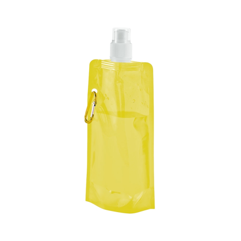 - Botella plegable de PE con capacidad de 460ml y mosquetón lateral