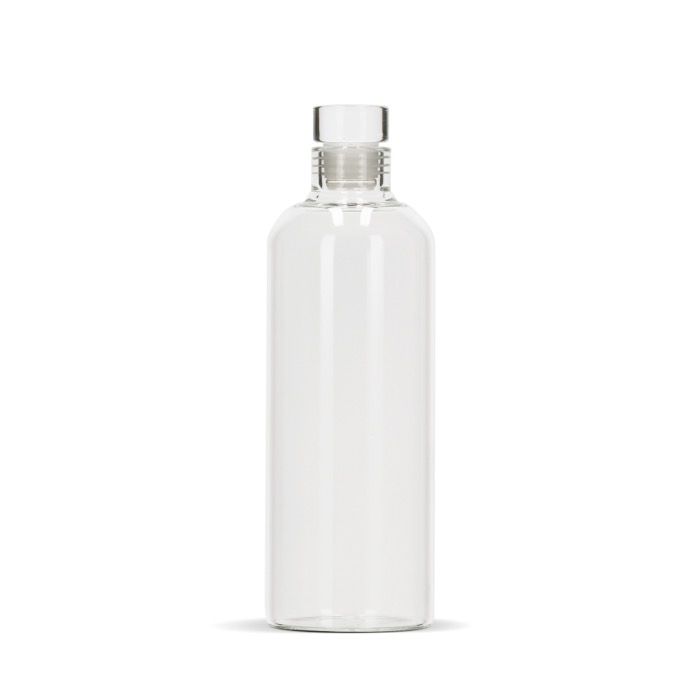 Botella de vidrio de borosilicato cristalino, ideal para beber, mezclar o servir bebidas. Con una capacidad de 750 ml, su diseño elegante y estilizado se complementa con un tapón flexible que evita derrames y mantiene la frescura de las bebidas. La superficie sin juntas ni costuras visibles no solo mejora su apariencia, sino que también facilita su limpieza, siendo apta para lavavajillas. Perfecta para reuniones corporativas o eventos de marketing, esta botella añade un toque de sofisticación a cualquier entorno profesional.