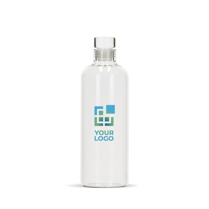 Botella con logotipo grande de cristal con tapón de acero 1L Mineral