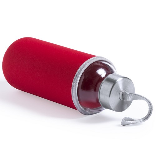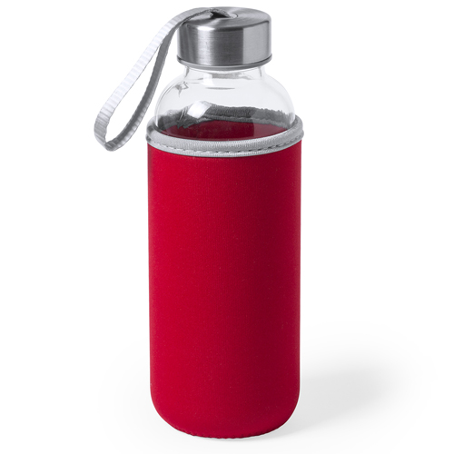 Un bidón de cristal que destaca por su original diseño con funda de neopreno a color. Con 420 ml de capacidad, cuenta con un tapón de seguridad de rosca hecho de acero inox que incorpora una cinta de transporte para aumentar la comodidad de uso y agarre. Se pueden personalizar con tu logo tanto el cristal y el tapón con grabado láser, como la funda de neopreno con varias técnicas a color. Un producto práctico y divertido que no es de extrañar que sea uno de los bestsellers del catálogo.