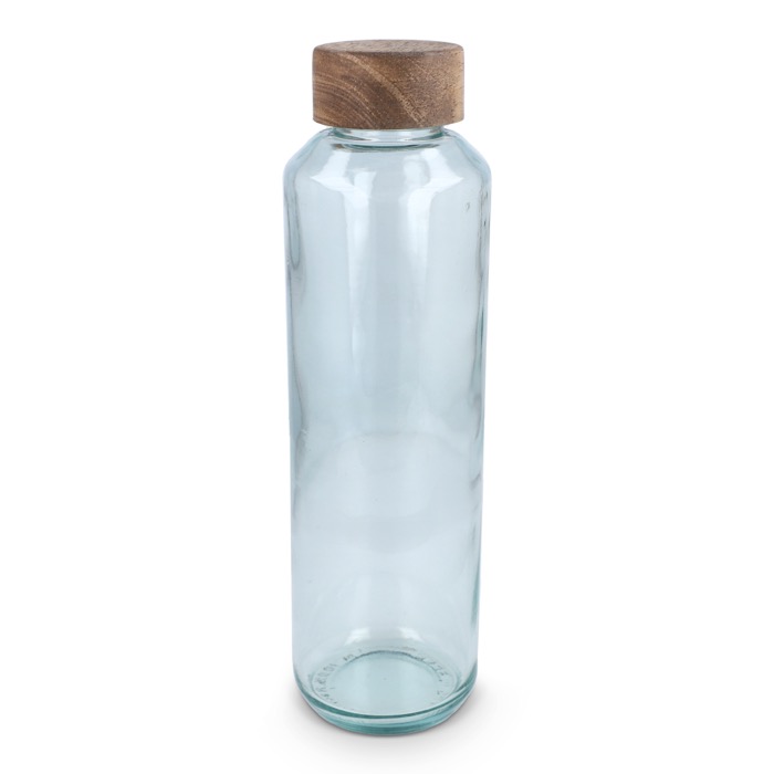 Botella de vidrio reciclado fabricada en Europa, pensada para servir agua con una presentación cuidada en oficina o en reuniones. Incorpora tapón de madera con Certificación de Sostenibilidad Forestal, aportando un cierre agradable al tacto y coherente con entornos corporativos. El sistema antigoteo ayuda a evitar manchas en la mesa y facilita su uso diario en escritorio o sala de juntas. Capacidad de 650ml, adecuada para mantener agua a mano durante la jornada. Útil para acciones de branding en eventos y regalos internos.
