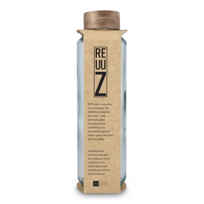 - Botella de vidrio reciclado fabricada en Europa con tapón