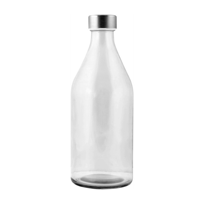 Botella con logotipo grande de cristal con tapón de acero 1L Mineral