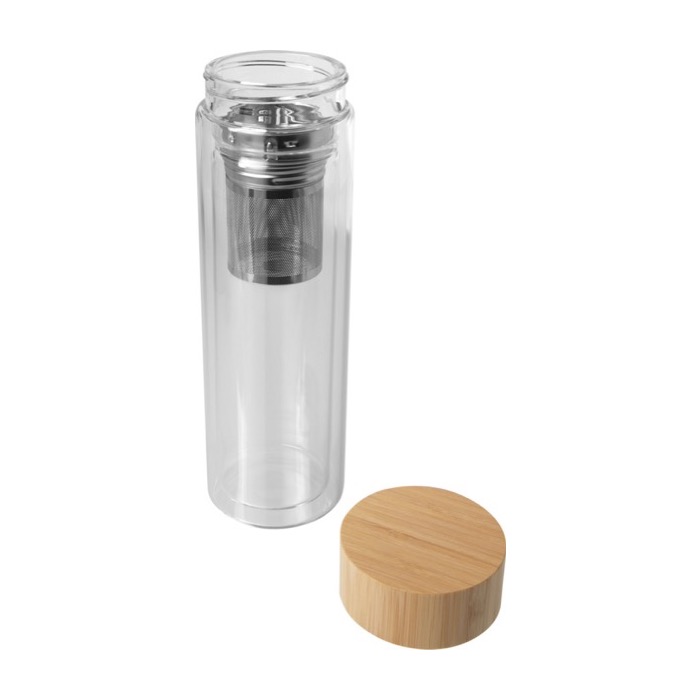 Botella de vidrio de borosilicato con infusor y tapa de bambú 400ml