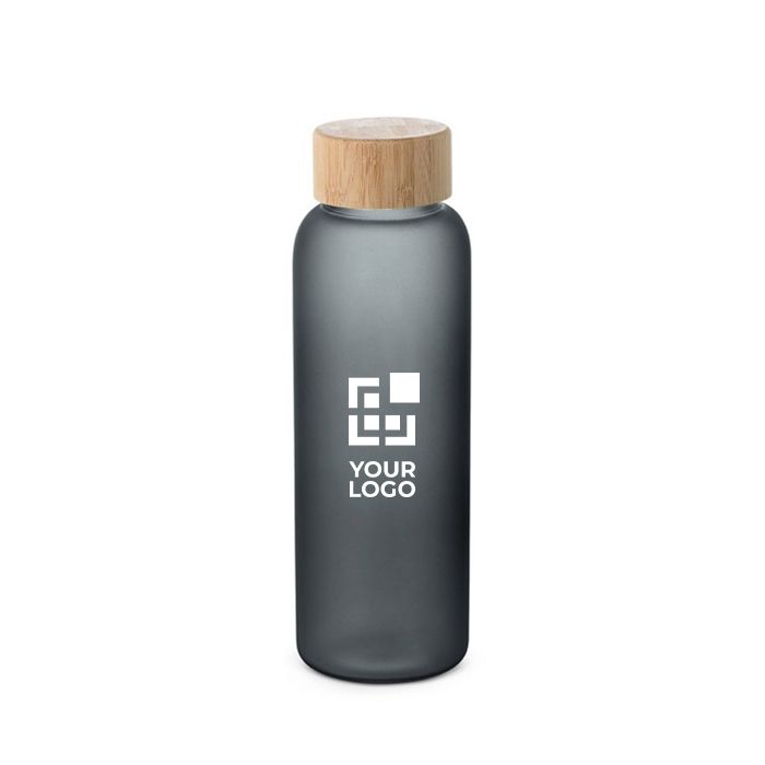 Botella de vidrio personalizada con acabado mate y tapa de bambú 500ml