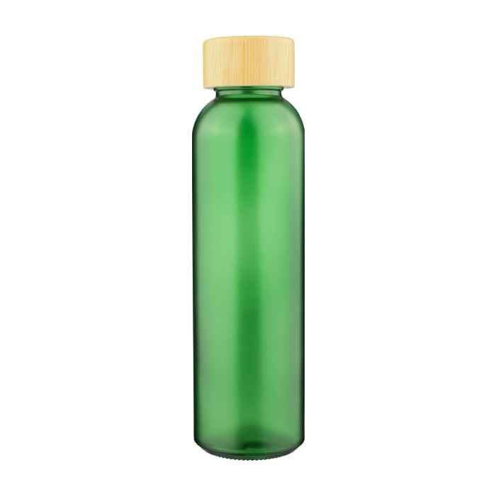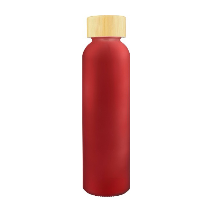 Botella de vidrio glaseado en colores con tapa rosca bambú 500ml