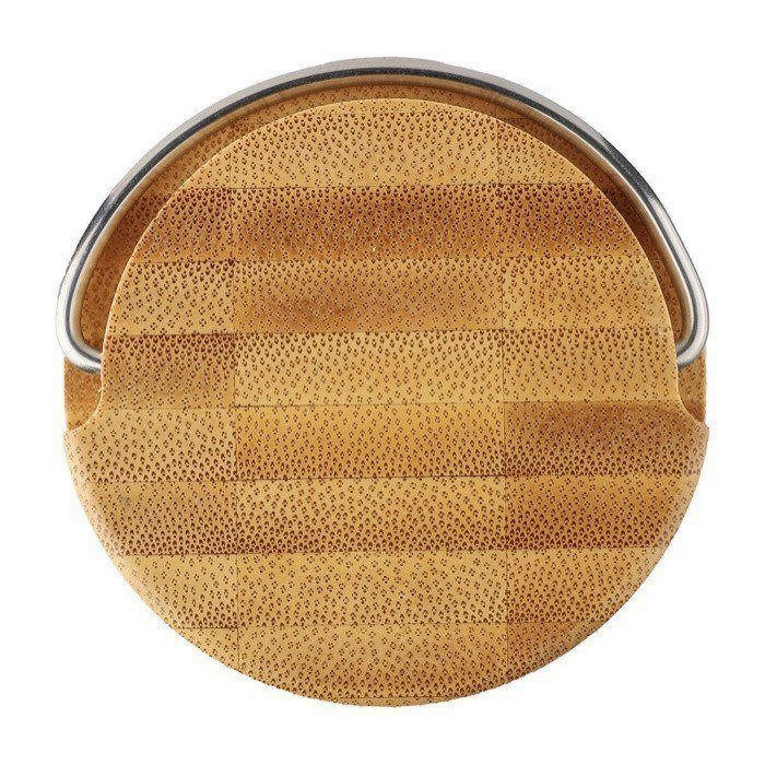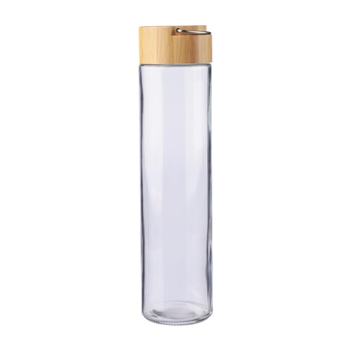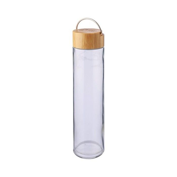 Botella de vidrio y tapa de bambú con asa de metal 500ml