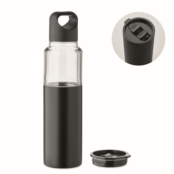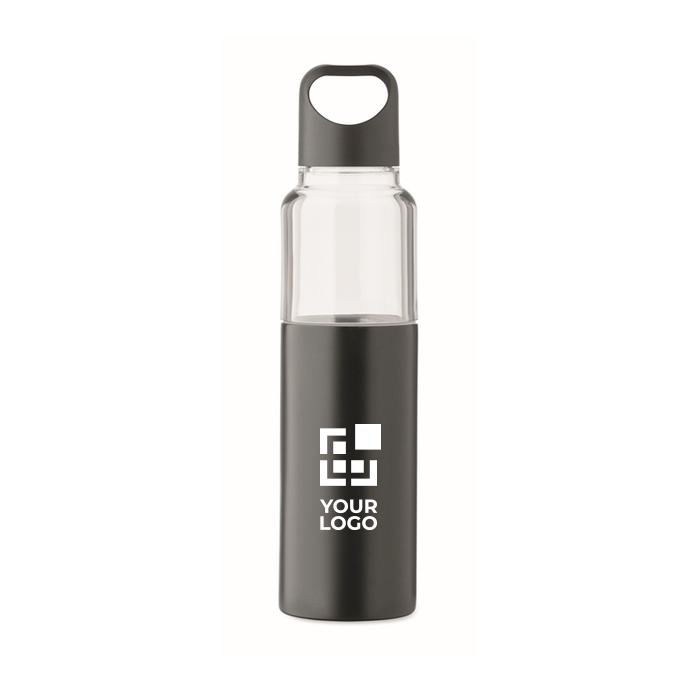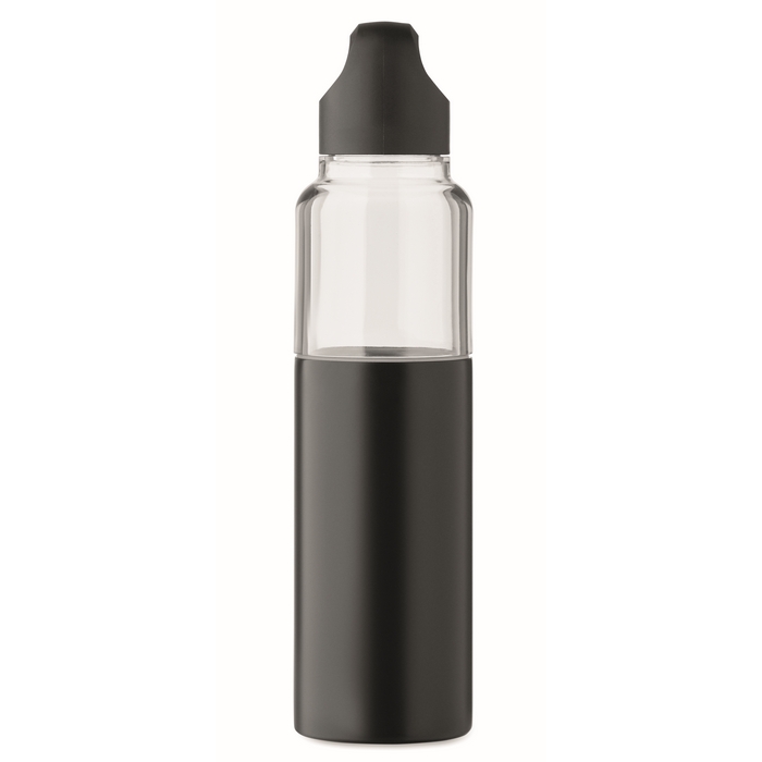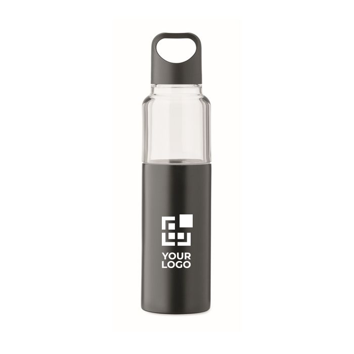 Botella 2 en 1 de Tritan con vaso de doble pared de acero inoxidable reciclado. Incluye dos tapas de PP para separar y cerrar cada parte de forma práctica. Capacidad total de 610 ml y vaso independiente de 350 ml, útil para servir bebida sin necesidad de llevar un recipiente adicional. La combinación de botella y vaso ayuda a organizar el consumo en oficina, eventos o desplazamientos. Opción adecuada para kits de bienvenida, acciones de fidelización o merchandising corporativo.