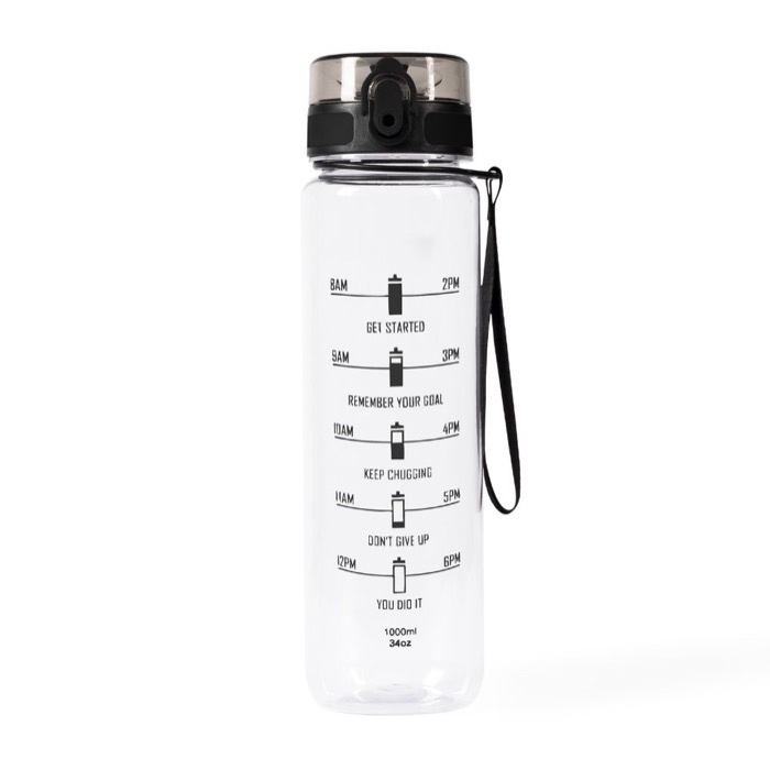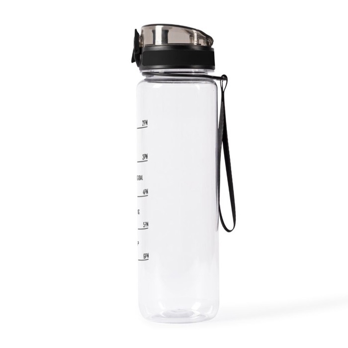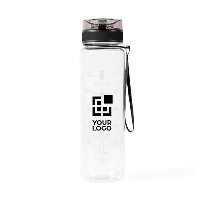 Botella de PETG de 1 litro con marcador de capacidad para controlar la hidratación durante la jornada. Incorpora tapón con cierre de seguridad que ayuda a evitar aperturas accidentales en mochila o bolsa. El diseño antigoteo reduce derrames en desplazamientos, reuniones o uso diario en oficina. La forma es cómoda de sujetar y facilita el llenado y la limpieza. Opción práctica para personalizar con el logo en acciones internas, ferias o campañas de visibilidad.