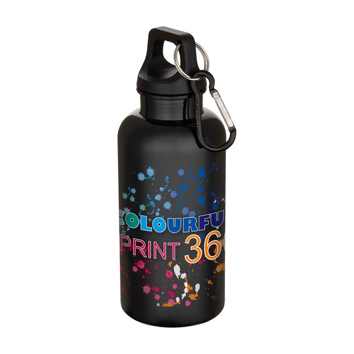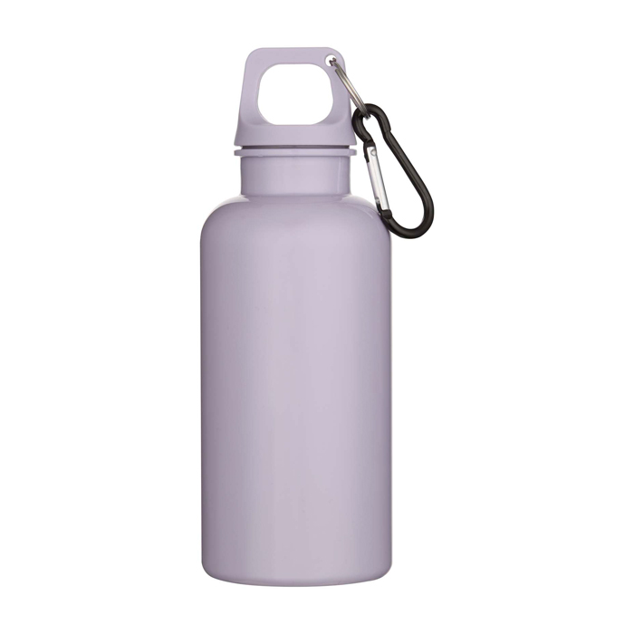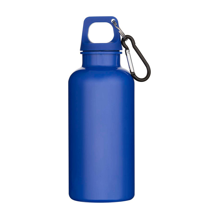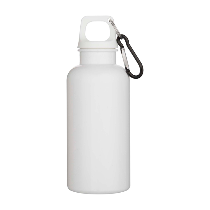 Botella de plástico reciclado con mosquetón y tapa de rosca 400ml