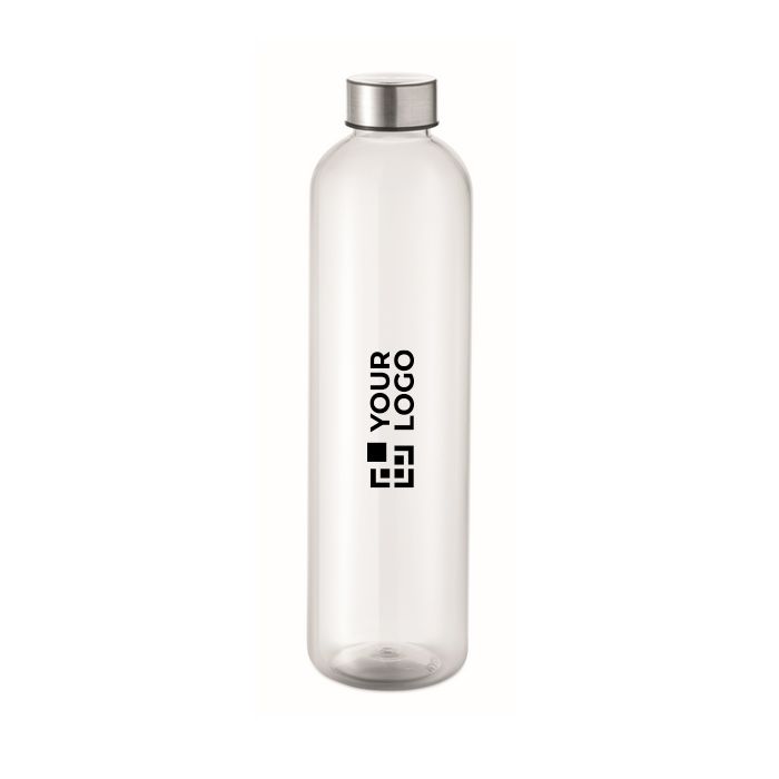 Botella de RPET con capacidad de 1 litro, pensada para un uso diario en oficina, eventos y desplazamientos. Incorpora cierre antifugas para evitar derrames en mochilas o bolsas y facilitar el transporte. El formato de 1 litro ayuda a mantener la hidratación durante jornadas largas y reduce la necesidad de recargas constantes. Superficie adecuada para personalización con logotipo o mensaje corporativo. Opción práctica para packs de bienvenida, campañas internas o merchandising en ferias.