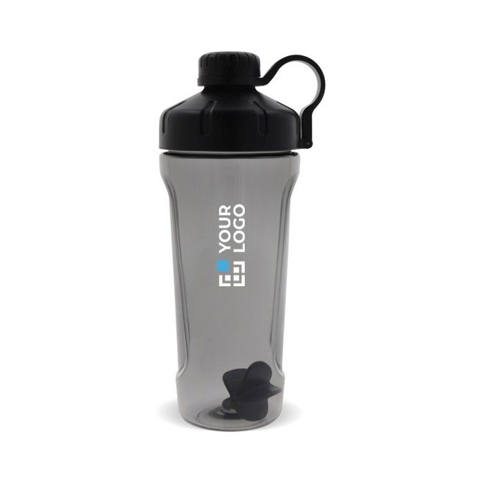Esta botella mezcladora de nuestro catálogo, o también shaker, de 900 ml hecha completamente de plástico, te permitirá a todos tus empleados que, una vez acabada toda su jornada laboral, puedan disfrutar de una excelente toma de sus suplementos con un estilo único en el gimnasio o en el lugar de sus entrenos gracias a este indispensable recipiente. Esta botella dispone de una tapa entera negra que le da un detalle sutil pero muy elegante a su vez. Dispone de diferentes técnicas de marcación desde uno a cuatro colores para poder ajustarse a la perfección a tu imagen corporativa.