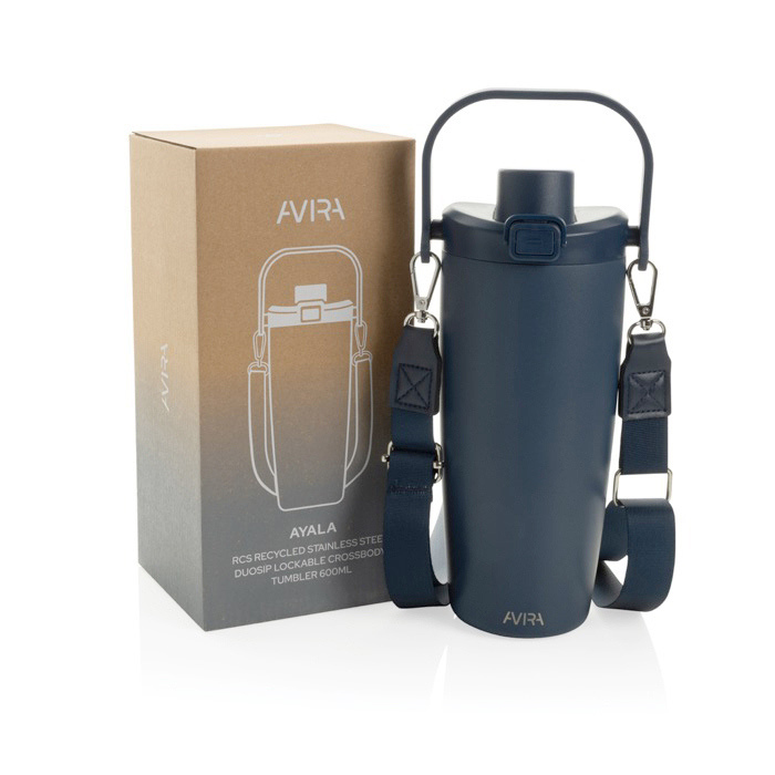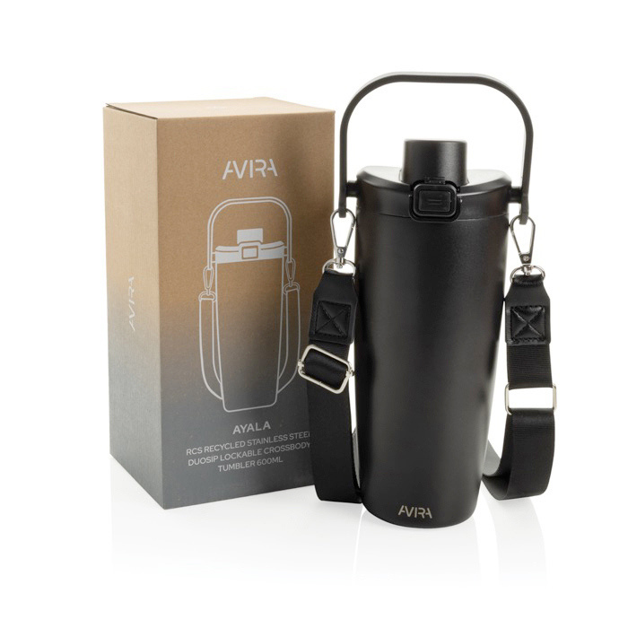 Botella de acero reciclado con certificación RCS (Recycled Claim Standard) pensada para el ritmo diario en ciudad y desplazamientos. Incorpora cierre antigoteo. asa de transporte y cordón desmontable para llevarla cruzada o al hombro con comodidad. Su aislamiento ayuda a mantener el calor hasta 5 horas y el frío hasta 15 horas. La base silenciada con silicona reduce ruidos y golpes al apoyarla. Se presenta en caja de papel kraft con FSC (Certificación de Sostenibilidad Forestal) reutilizable como accesorio de escritorio. útil en acciones internas y eventos corporativos.