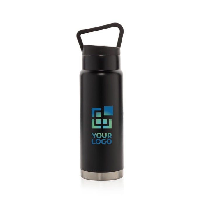 Botella de 650 ml fabricada en acero inoxidable de alta calidad. Diseñada con doble aislamiento, esta botella mantiene las bebidas frías hasta 15 horas y calientes hasta 5 horas, ideal para largas jornadas laborales. Incluye un asa en la tapa, facilitando su transporte a cualquier lugar. Libre de BPA, garantiza seguridad en cada uso. Su diseño antigoteo previene derrames, asegurando una experiencia sin complicaciones. Presentada en una elegante caja de regalo, es un producto bestseller que combina funcionalidad y estilo. Perfecta para empresas que buscan un artículo promocional práctico y duradero para sus clientes o empleados.