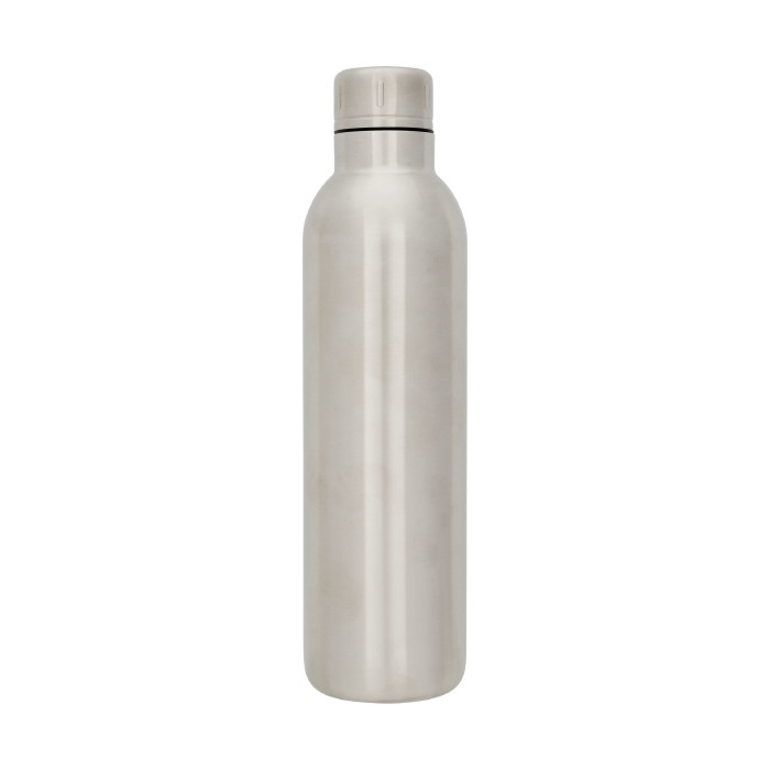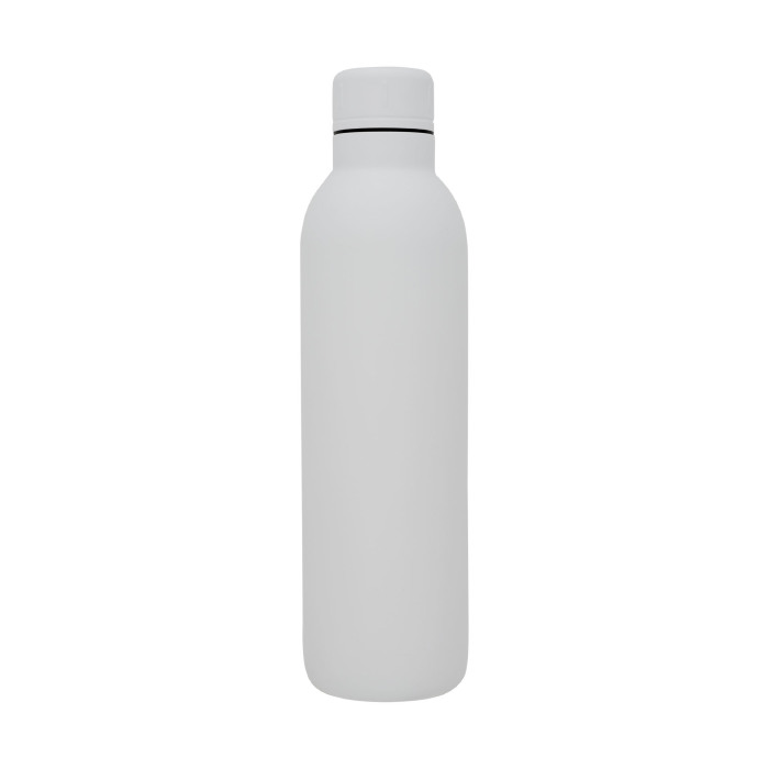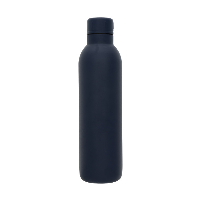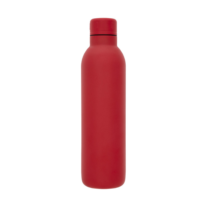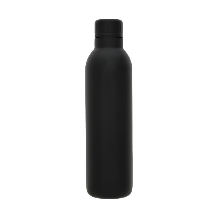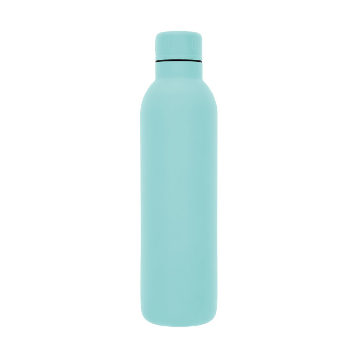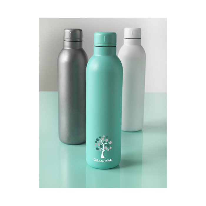 Esta botella termo fabricada en acero inoxidable se presenta bajo un diseño de doble pared y aislamiento de cobre que te permitirá mantener las bebidas a la temperatura óptima por más tiempo. En concreto, los líquidos estarán fríos durante 48 horas, mientras que permanecerán calientes por al menos 12 horas. Asimismo, su estructura está creada para evitar la condensación exterior del recipiente, lo que es perfecto para no dejar manchas de humedad en las superficies donde se deje. Está disponible en varios colores con pintura en polvo, y se presenta de forma moderna y cuidada en un estuche de regalo. Cuenta con 510 ml de capacidad y un tapón de rosca antifugas. Asimismo es apta para personalizar con tu logotipo, incluso con diseños a todo color o con grabado láser.