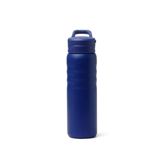Botella térmica de acero inoxidable reciclado 304 de doble pared, pensada para el uso diario en oficina y desplazamientos. La tapa incluye pajita abatible con recubrimiento de silicona, apertura automática mediante botón y cierre individual para un manejo cómodo. Incorpora bloqueo de seguridad para evitar aperturas accidentales y sistema antigoteo gracias al anillo del cuello y al sellado de silicona. Añade asa de transporte integrada en la tapa para moverla con facilidad. Adecuada para acciones de marca en eventos internos o regalos de bienvenida.