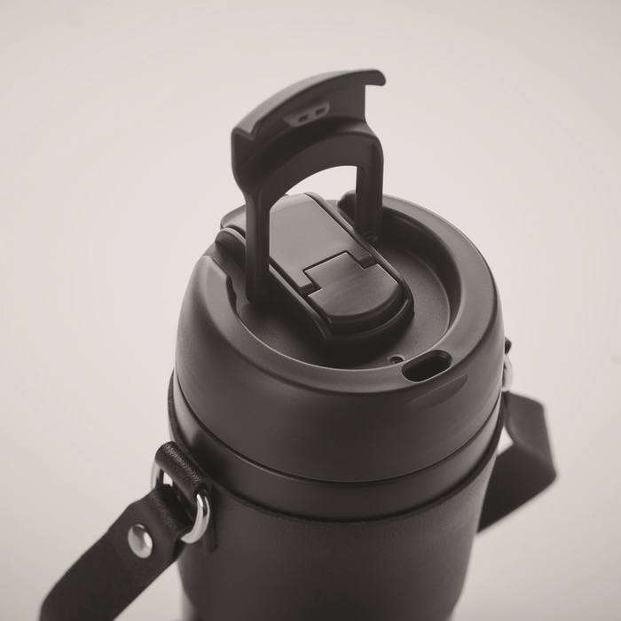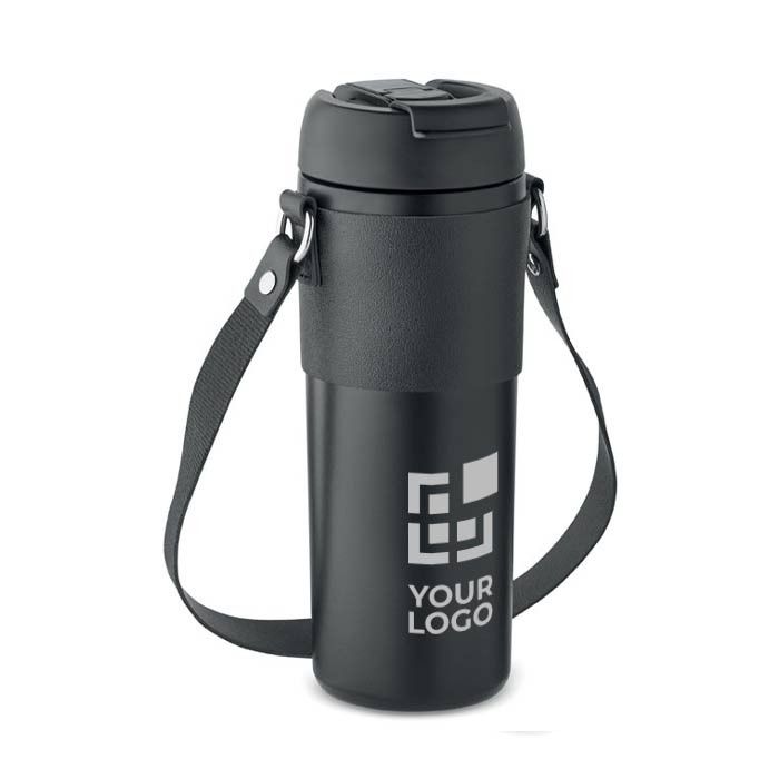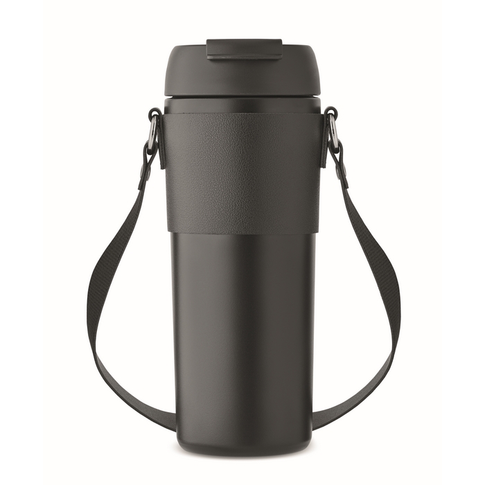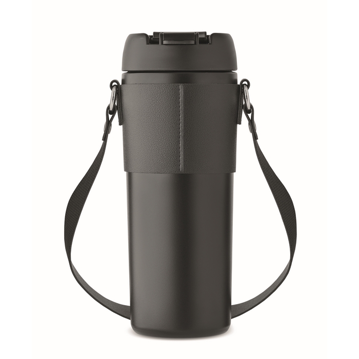 Vaso de acero inoxidable de 700 ml con tapa antifugas y correa para llevar fácilmente