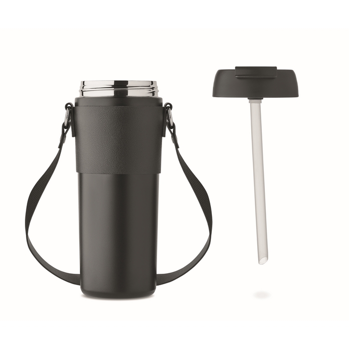 Vaso antifugas de acero inoxidable con tapa, pajita y correa 700ml
