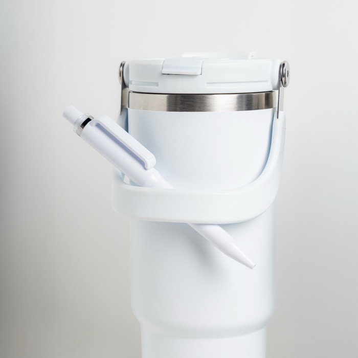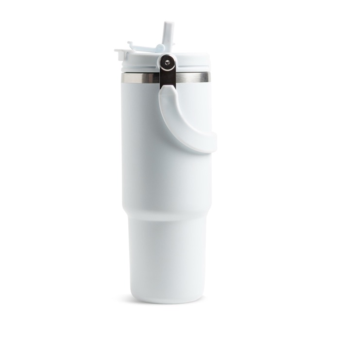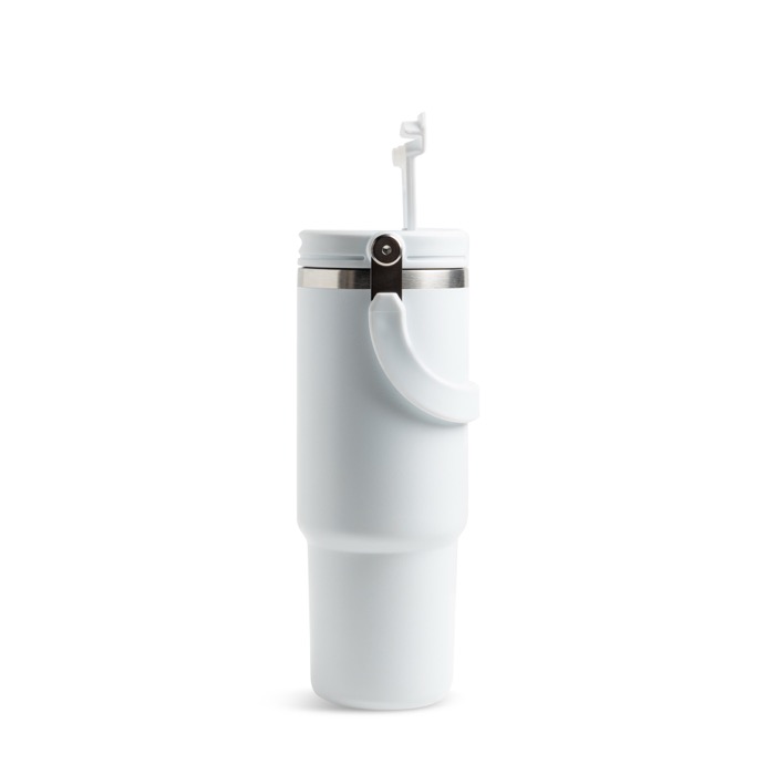 Vaso térmico de 900 ml fabricado en acero inoxidable, diseñado para ofrecer un rendimiento térmico excepcional. Su tapa doble garantiza un sellado seguro, mientras que el aislamiento al vacío de su estructura de doble pared mantiene las bebidas frías hasta 24 horas y calientes hasta 12 horas. Equipado con una pajita abatible y boquilla integrada, permite un uso cómodo incluso en movimiento. La asa metálica plegable facilita su transporte, convirtiéndolo en un accesorio práctico para cualquier ocasión. Su diseño moderno y funcional se presenta en una caja individual, ideal para uso diario o como regalo corporativo. Perfecto para empresas que buscan soluciones prácticas para el personal en movimiento o como parte de un kit de bienvenida.