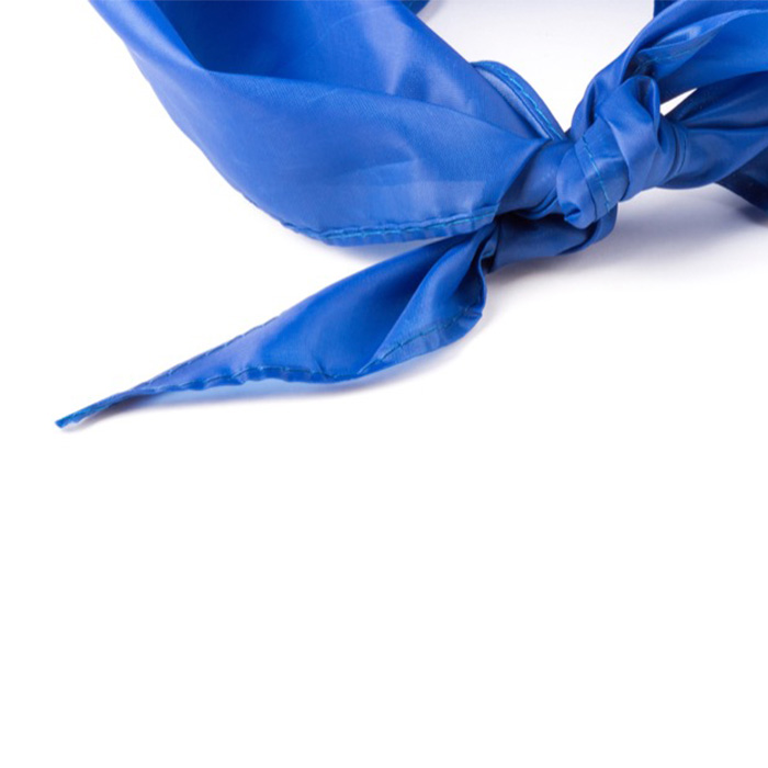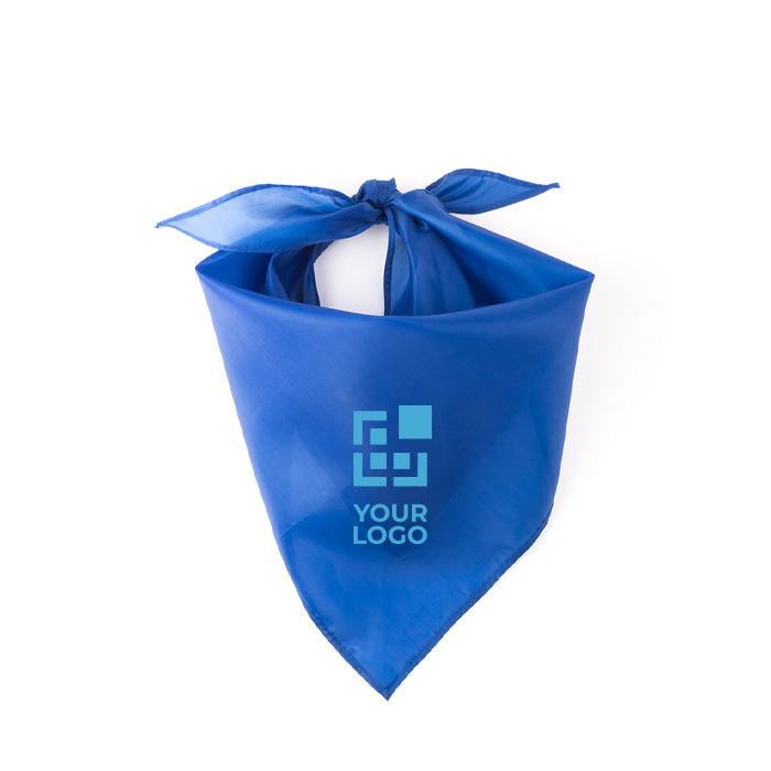 Si buscas versatilidad de uso y productos que puedan llevarse libremente, este pañuelo de diseño triangular encaja perfectamente con tus requisitos principales. Fabricado en poliéster y disponible en varios colores, se puede llevar fácilmente en el pelo, el cuello, la muñeca, el tobillo o incluso atado en la ropa o los accesorios personales, por ejemplo. Su superficie de tela es personalizable con el logo o nombre de tu empresa, permitiendo aumentar la visibilidad de marca en espacios de mucha afluencia de personas. No se entrega con embalaje individual.