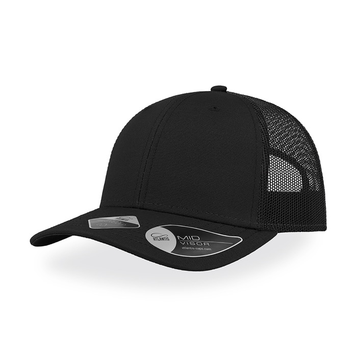 Gorra de algodón reciclado de 6 paneles y malla trasera 250 g/m2