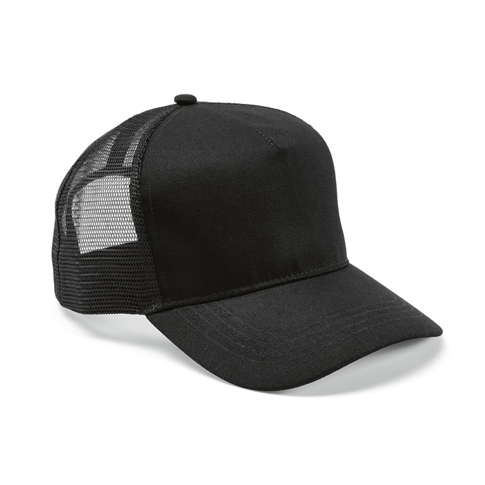 Gorra de algodón reciclado de 5 paneles con malla trasera 220 g/m2