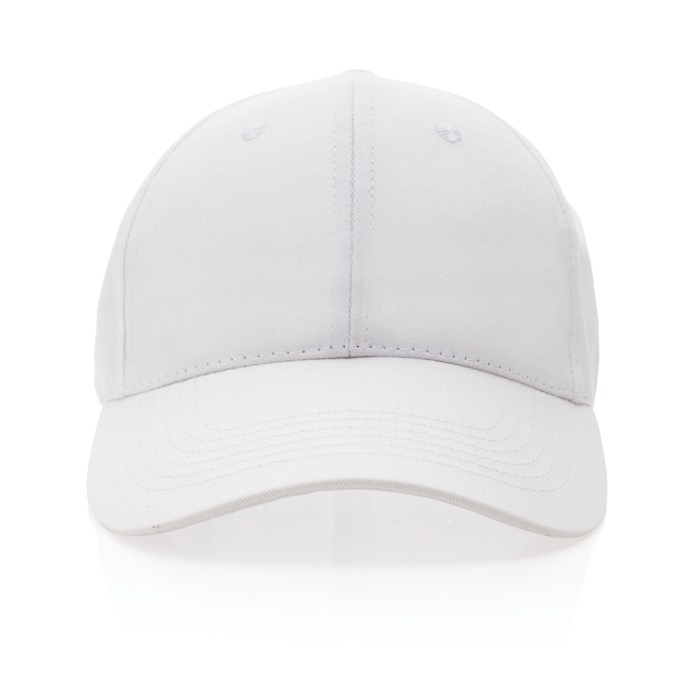 Gorra de 6 paneles fabricada en algodón 100% reciclado, equipada con una visera curva que proporciona sombra y estilo. Los ojales bordados aseguran una ventilación adecuada, mientras que el cierre de velcro permite un ajuste cómodo y seguro. Con un peso de 190 g/m2 y un tamaño estándar de 58 cm, esta gorra incorpora el trazador AWARE™ para garantizar la autenticidad de sus materiales reciclados. Se entrega en bolsa y a granel, facilitando su distribución. Ideal para empresas que buscan promover su compromiso con la sostenibilidad en eventos corporativos o como parte de su merchandising ecológico.