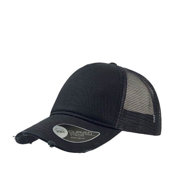 Gorra de algodón con la visera desgastada y cuerpo en malla