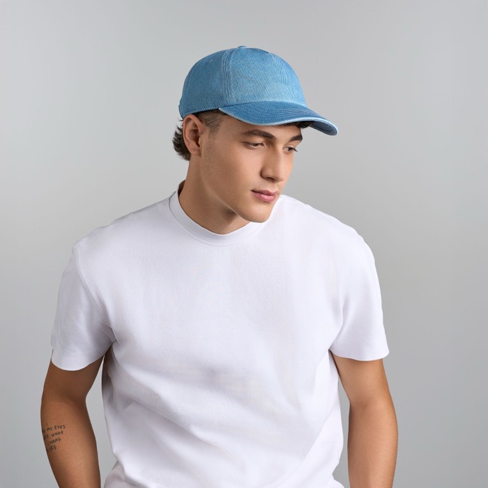 - Gorra béisbol 5 paneles con acabado denim y ajuste cómodo