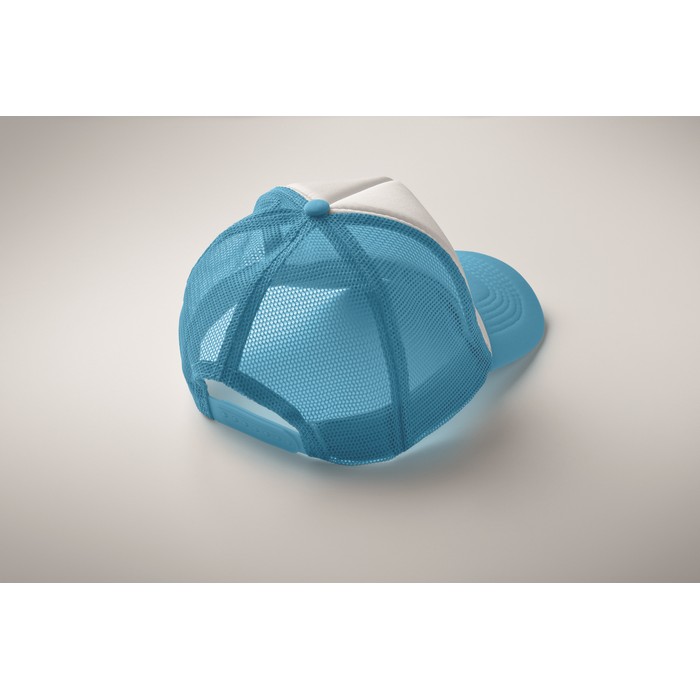 Gorra de béisbol fabricada en poliéster de 140-150 gr/m2, ideal para empresas que buscan personalización. Consta de 5 paneles, ofreciendo un diseño versátil y cómodo. El cierre de plástico ajustable asegura un ajuste perfecto para cualquier usuario. El panel frontal y la visera están reforzados con foam, lo que proporciona una estructura sólida y duradera, mientras que los otros paneles de rejilla de color garantizan una excelente transpirabilidad. Especialmente diseñada para sublimación, permite personalizar con logotipos o mensajes corporativos. La medida estándar de 7 1/4 se adapta a la mayoría de los tamaños. Con servicio Express, es perfecta para eventos corporativos o promociones de marca.