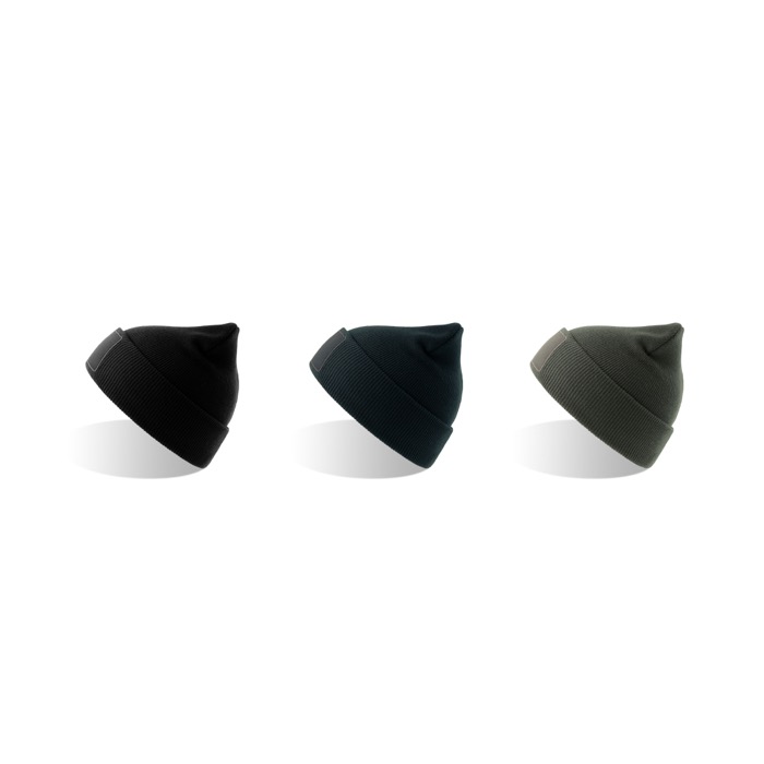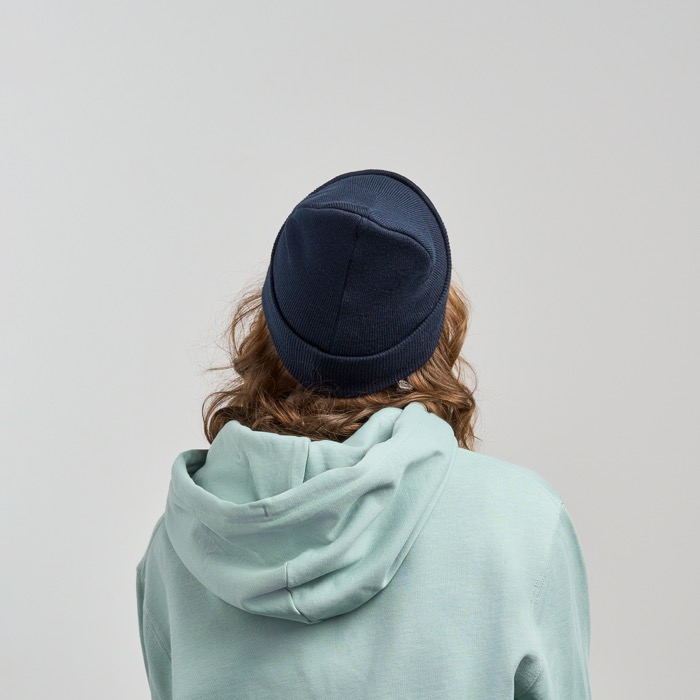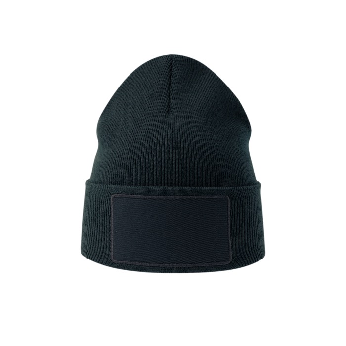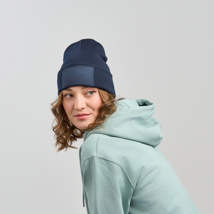Gorro de lana y RPET con parche personalizable y pliegue original