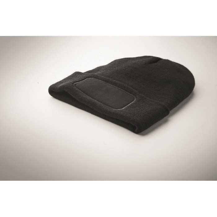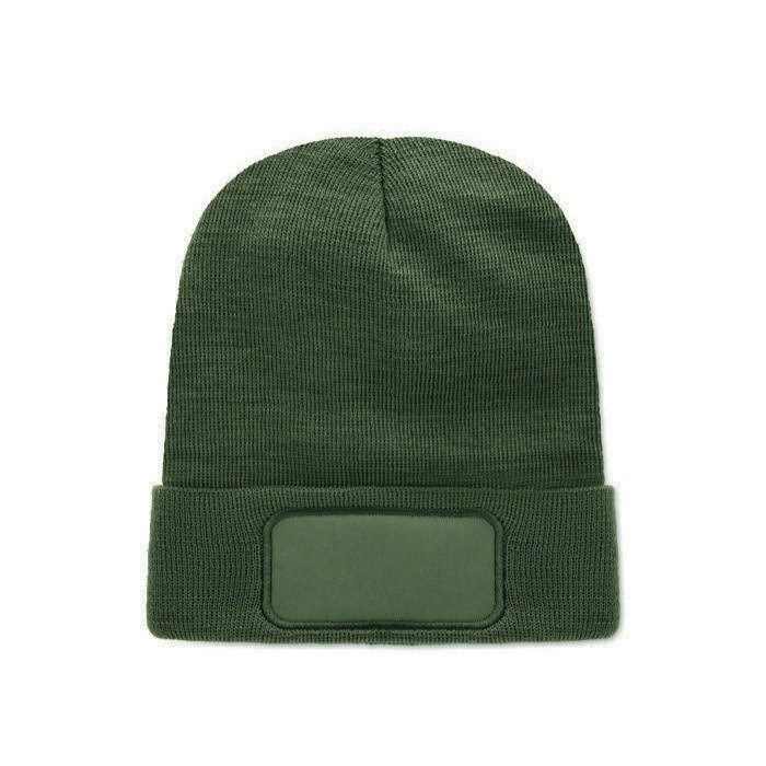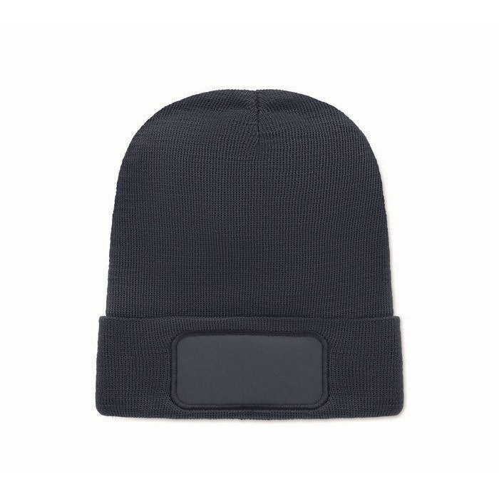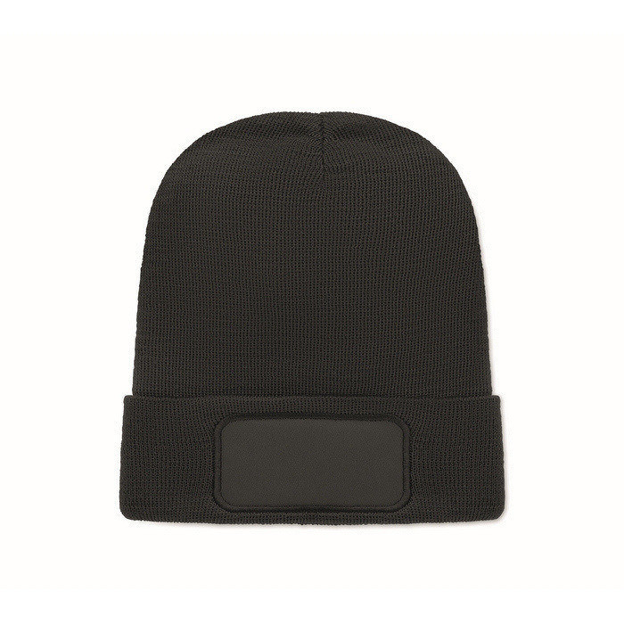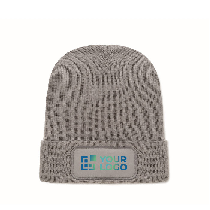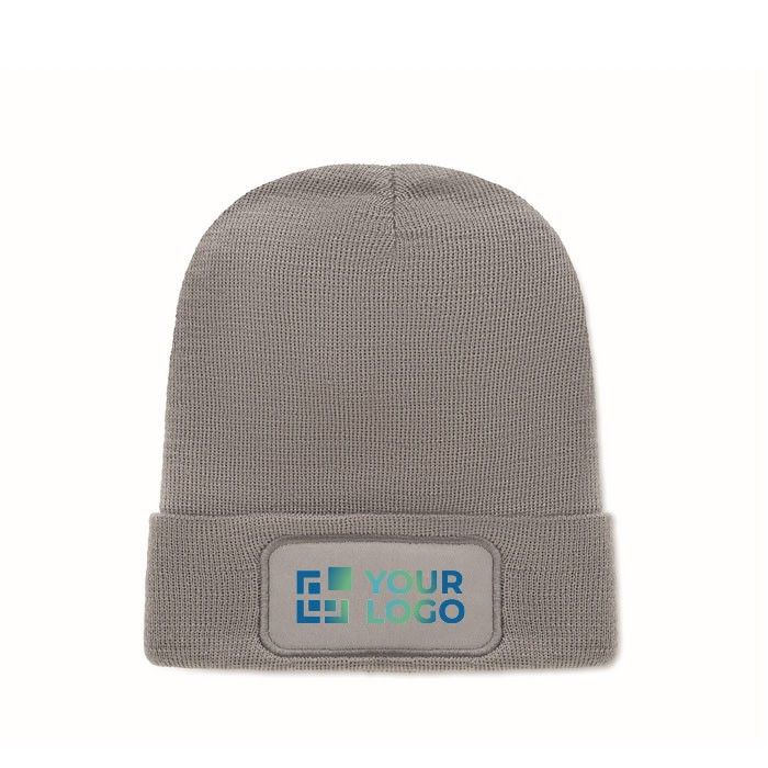 Gorro de lana y RPET con parche personalizable y pliegue original