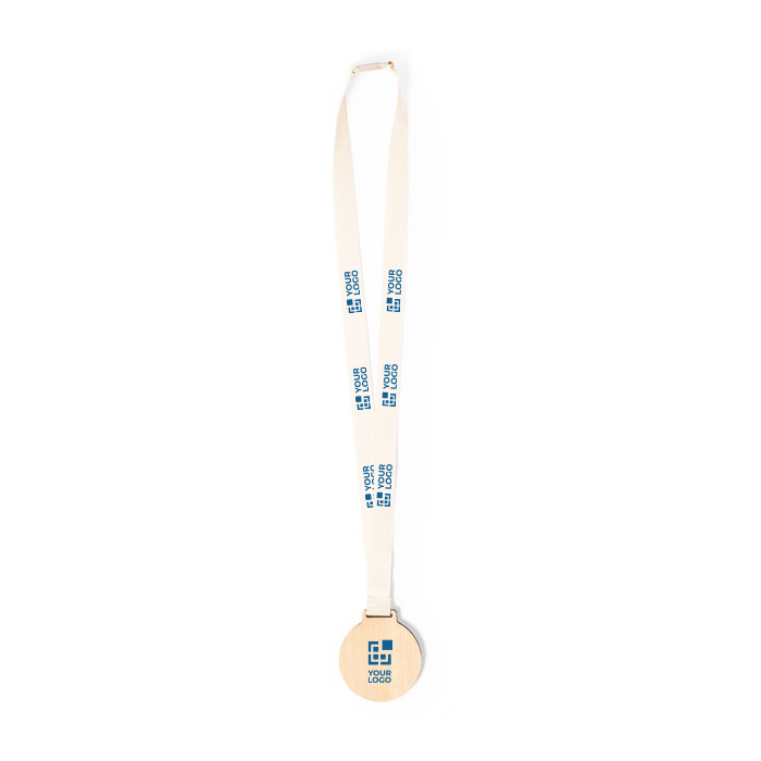 Medalla de madera y cordón de algodón con cierre de seguridad