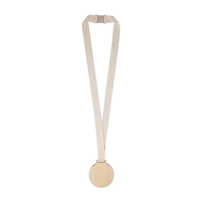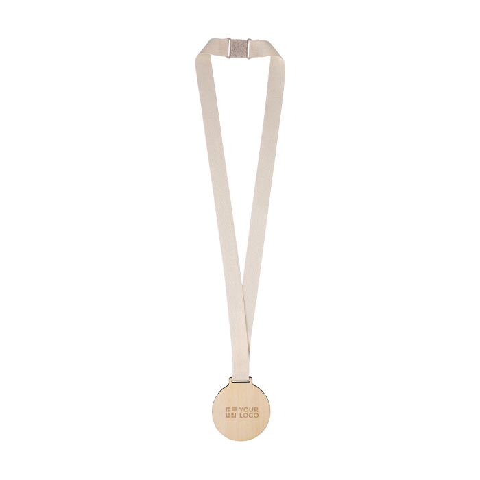 Medalla de madera con cordón de algodón con hebilla de seguridad