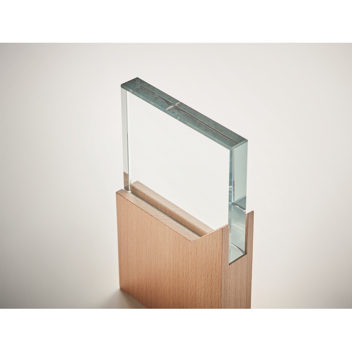 Placa o trofeo de cristal sobre base de madera Commemorative