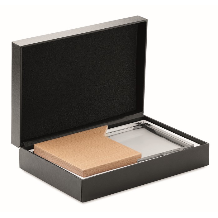 Para actos conmemorativos o reconocimientos significativos, una placa trofeo de cristal sobre base de madera de haya ofrece una distinción versátil. Personalízala con tu logotipo para que tu marca quede grabada en un objeto que simboliza la gratitud y el éxito. Su diseño permite que actúe tanto como trofeo como placa, añadiendo un toque de elegancia y calidez. Al entregarla, no solo honras los logros, sino que también fortaleces la conexión emocional con tus colaboradores. Además, se presenta en una caja de regalo, lo que realza su valor y exclusividad.