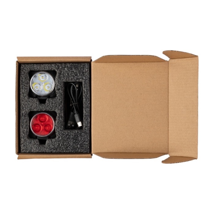 Transforma cada trayecto ciclista en una experiencia segura y luminosa con un set de dos luces recargables para bicicleta. Fabricadas en ABS y silicona, con tres LEDs y cuatro modos de iluminación, garantizan una visibilidad excepcional. La capacidad de la batería de 650 mAh asegura un uso prolongado, lo que refuerza la confianza en cada salida. Al ofrecer este conjunto, tu marca se asocia con la seguridad y la innovación. Presentado en una caja de cartón marrón, es una forma de demostrar tu compromiso con el bienestar de tus clientes.