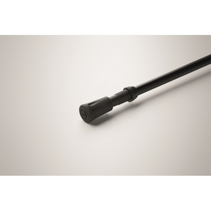 Bastón de marcha con empuñadura de EVA, correa para la muñeca y punta de goma para apoyar con seguridad. Incluye cesta para el barro, pensada para terrenos blandos y rutas al aire libre. La altura se ajusta de 105 a 120 cm, lo que facilita adaptarlo a distintos usuarios en eventos o actividades de empresa. Se entrega en bolsa de RPET con cordón, práctica para transporte y almacenaje. Útil para acciones de team building o kits de bienvenida.