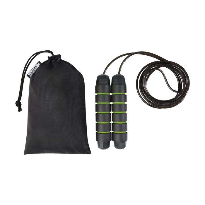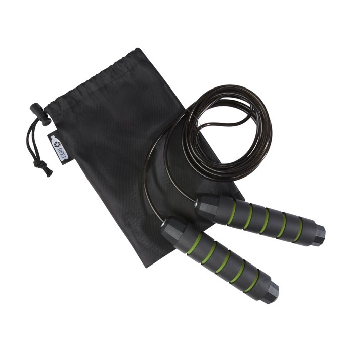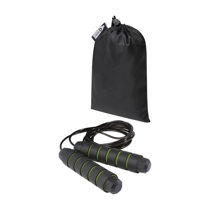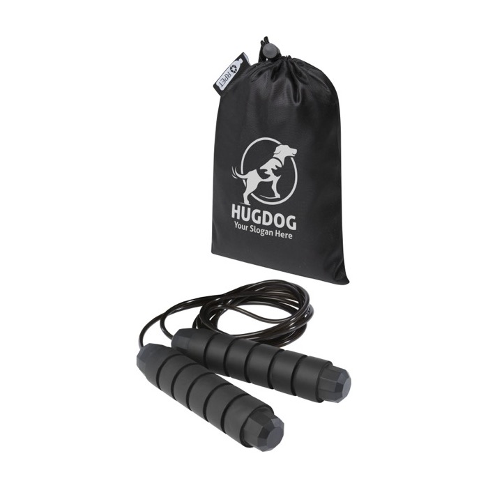 Una cuerda para saltar con mangos de espuma es un artículo excelente para el ejercicio cardiovascular y la mejora de la coordinación. Sus mangos ergonómicos aseguran un agarre cómodo. La longitud de 3,10 m es adecuada para adultos hasta 1,95 m de altura, y su ajuste permite adaptarse a diferentes usuarios. El rodamiento de bolas de alta calidad, giratorio en 360º, garantiza una rotación suave y sin esfuerzo, evitando enredos. Incluye una bolsa de almacenamiento de rPET. Distribúyela en gimnasios o eventos deportivos, asociando tu marca con el bienestar y aumentando tu visibilidad.