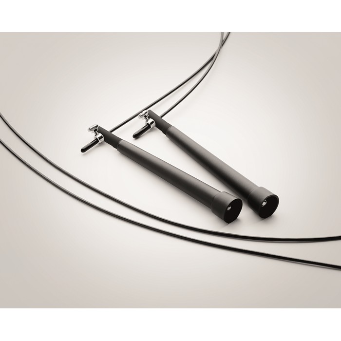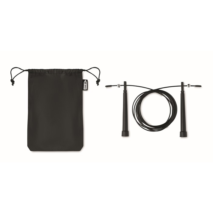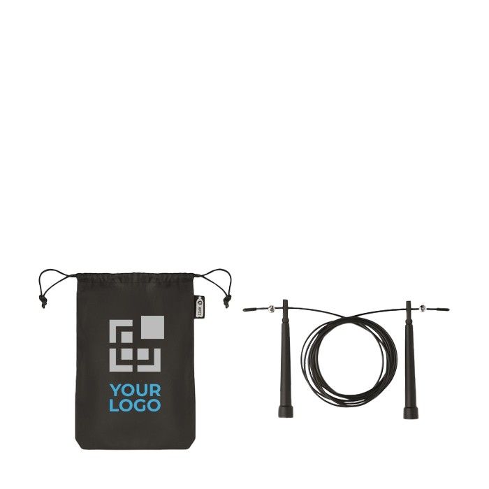 Una cuerda para saltar regulable es una herramienta sencilla y efectiva para el ejercicio cardiovascular. Su longitud adaptable la hace apta para diferentes usuarios, y la funda de presentación facilita su almacenamiento y transporte. Con tratamiento de PVC, ofrece durabilidad y resistencia, asegurando un uso prolongado. La funda en RPET 210D refuerza el compromiso con la sostenibilidad, un valor cada vez más apreciado por las empresas. Tú puedes ofrecerla como un incentivo para el fitness en casa o como parte de un kit de entrenamiento. Tu logotipo se exhibirá en un producto que tus clientes utilizarán para mantenerse en forma.