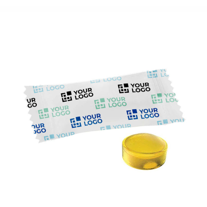 Caramelos duros de 2,5g fabricados sin azúcar, envueltos en material reciclable y personalizable. Cada kilogramo contiene aproximadamente 400 unidades, ofreciendo una amplia variedad de sabores como limón, naranja, manzana, frambuesa, frambuesa ácida, fresa, cereza, cola y menta. Producidos en Europa, estos caramelos tienen una vida útil de 24 meses, asegurando frescura y calidad a largo plazo. Ideales para empresas que buscan un detalle sencillo y económico, pero con gran impacto. Perfectos para serigrafiar con el logo de la empresa en el envoltorio, son una excelente opción para eventos corporativos o campañas publicitarias.