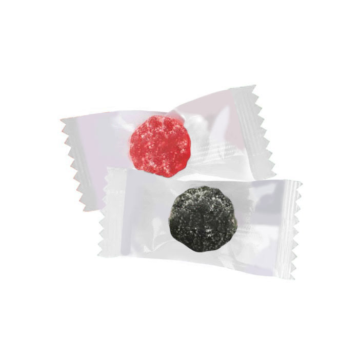 Bolsita individual de caramelos pectina en forma de bayas con azúcar