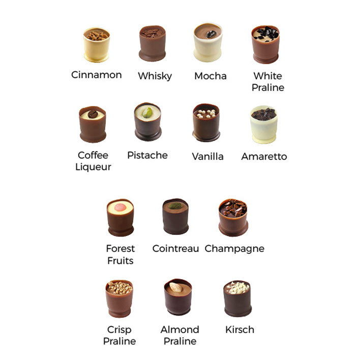 Chocolates de leche en forma de cubo con variedad de rellenos