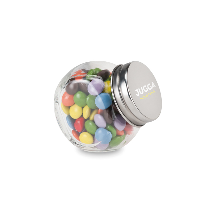 Bote de cristal fabricado en Europa, contiene 30 gramos de deliciosos chocolates de colores. Ideal para empresas que buscan un detalle original para sus empleados durante las festividades navideñas. El bote puede personalizarse con el logo de la empresa, ofreciendo una presentación elegante y profesional. Además, cuenta con un servicio Express para entregas rápidas, asegurando que llegue a tiempo para cualquier evento corporativo. Perfecto para incluir en paquetes de bienvenida, regalos de fin de año o como parte de una estrategia de marketing que refuerce la identidad de marca.