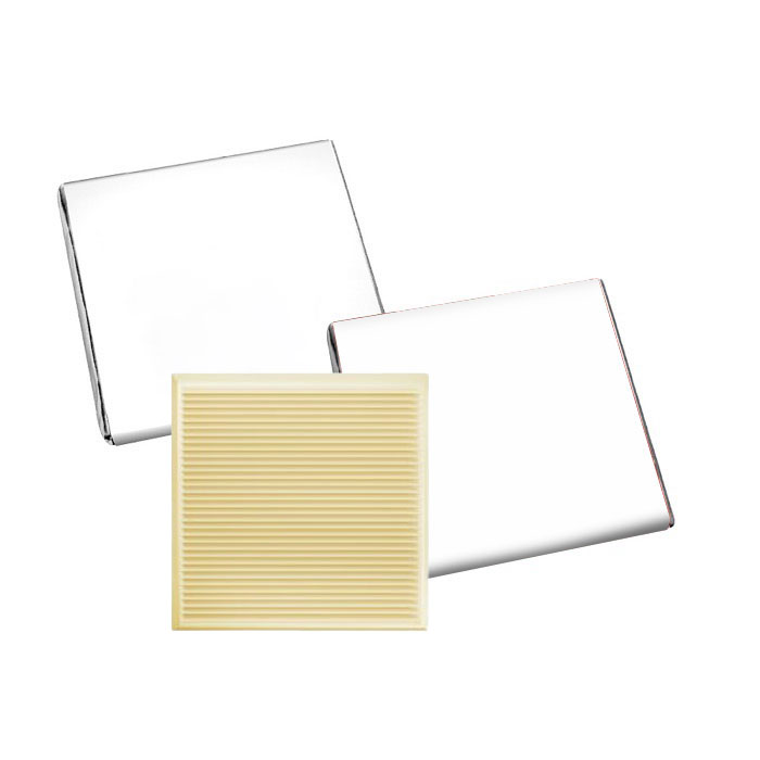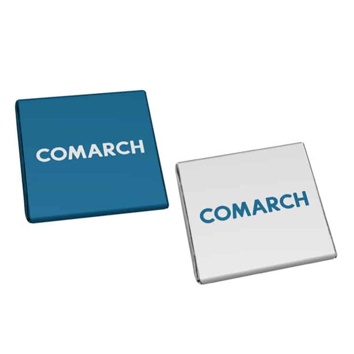 Chocolatinas de 5g elaboradas con chocolate blanco que contiene un 36% de cacao o chocolate negro con un 54% de cacao. Cada chocolatina está envuelta en un elegante papel aluminizado, lo que garantiza su frescura y presentación sofisticada. La personalización se realiza mediante técnica digital, permitiendo incluir el logo de la empresa o cualquier diseño específico. Fabricadas en Europa, estas chocolatinas tienen una vida útil de 8 meses, asegurando su calidad durante un periodo prolongado. Ideales para eventos corporativos, regalos promocionales o como parte de una estrategia de marketing, ofreciendo un toque distintivo y personalizado.