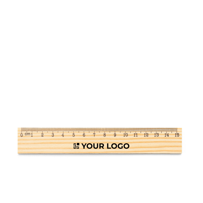 Regla de madera de pino con escala de 15cm impresa en color negro, pensada para un uso diario en oficina, aula o entornos técnicos. La lectura es clara y rápida, adecuada para tareas de medición básicas y para complementar kits de papelería corporativa. Al tratarse de un material natural, el tono de la madera y el resultado de la impresión pueden variar entre unidades. Se entrega en bolsa kraft de presentación, útil para acciones de bienvenida o eventos.